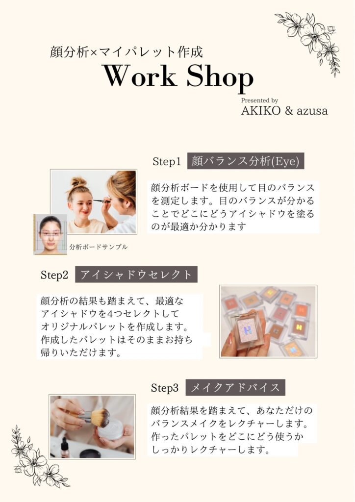 イメージコンサルタントの2人から、丁寧に簡易顔分析+アイメイクレッスンをさせて頂きます。